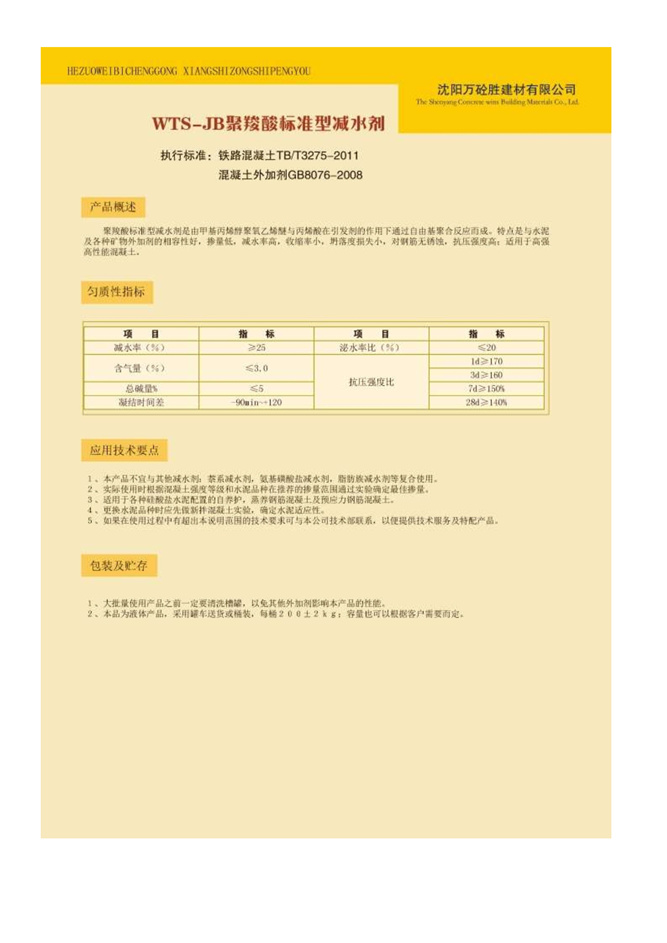 WTS-JB聚羧酸標準型減水劑